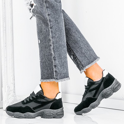 - Športová obuv vyrobená z kombinácie ekologického semišu a čiernej látky. Zvršok je šnurovaný. Látková vložka. Robustne vyrobený a veľmi pohodlný vďaka hrubej podrážke.
