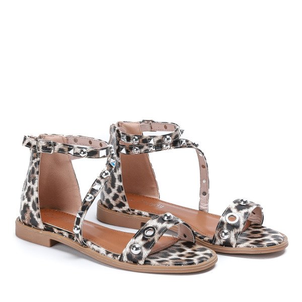 Brązowe sandały w panterkę z ćwiekami Lore - Obuwie
