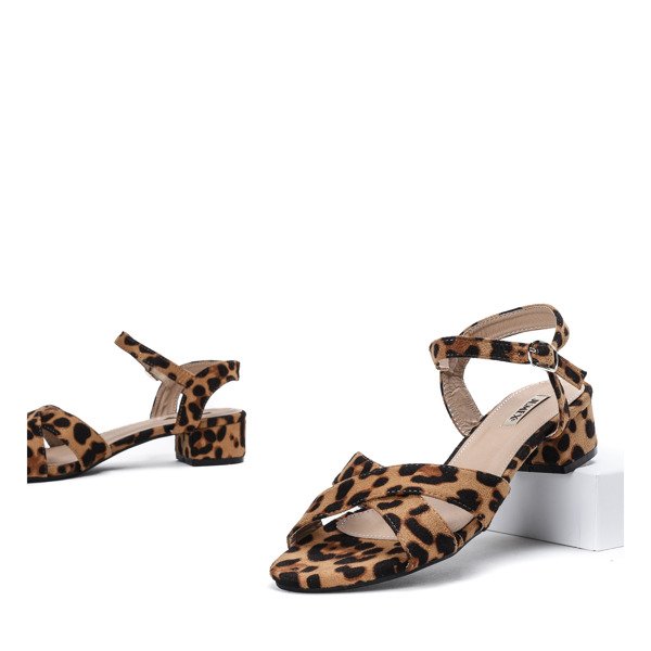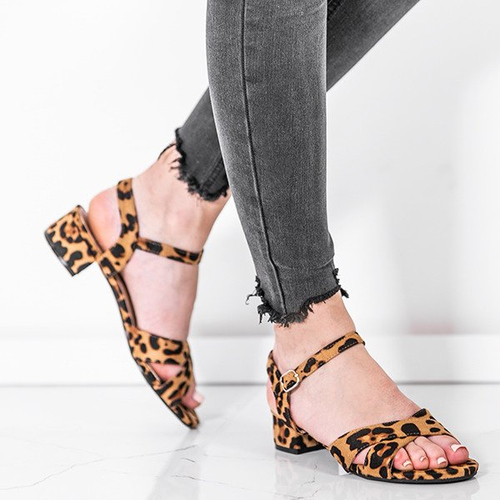 - Hnedé sandále na nízkom podpätku. Materiál je vyrobený z ekologického semišu, stielka z ekologickej kože. Zvršok zdobí leopardia potlač. Neskutočne pohodlná dámska obuv, ktorá sa hodí na každú príležitosť!