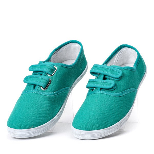 - Klasyczne dziecięce tenisówki zapinane na rzepy w kolorze zielonym. Cholewka jak i wkładka wykonane są z tkaniny. Solidnie wykonane i bardzo wygodne dzięki miękkiej, gumowej podeszwie. Doskonale się sprawdzą na cieplejsze dni!