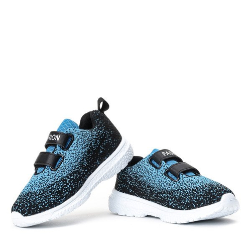 • Černé a modré sportovní chlapecké boty se suchým zipem. Svršek z tkané textilie. Obuv má plochý podešev. Stélka a střed potažené měkkou tkaninou