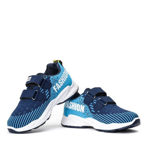 • Modrá a tmavě modrá dětská obuv vyrobená z tkané textilie na ploché podrážce. Boty jsou připevněny suchým zipem. Svršek má bílé psaní. Pohodlná obuv, která funguje každý den!