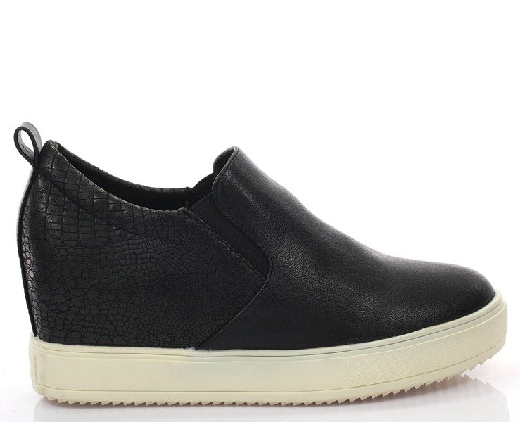- Klasické klincové tenisky s podpätkom 5 cm. Obuv vyrobená z ekologickej kože, na zadnej strane s razbou imitujúcou hadiu kožu. Perfektné pre dámy so štýlom! POZNÁMKA: výrobok môže mať podfarbenú podrážku.