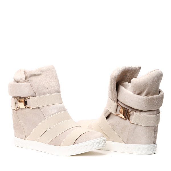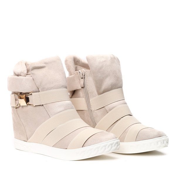 Beżowe sneakersy na krytym koturnie z ozdobnymi paskami Petiena - Obuwie