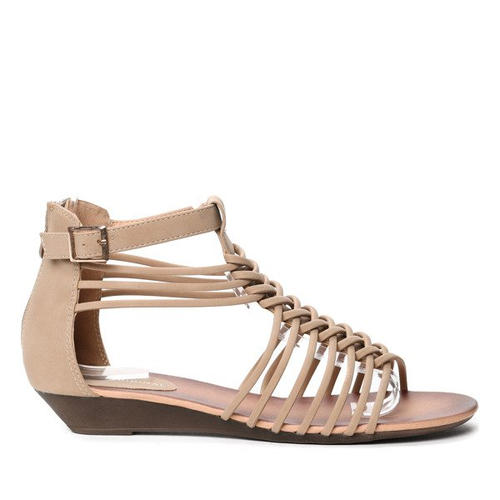 Béžové sandále na nízkom podpätku vyrobené z umelej kože Uasswerra - Obuv