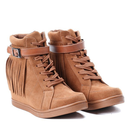 - Jedyne w swoim rodzaju botki wykonane z miękkiego zamszu. Ich główna ozdobą są frędzle w stylu boho i klamerka. Mimo casualowego kroju, sylwetka prezentuje się w nich znakomicie, dzięki koturnie. Solidnie wykonane i bardzo wygodne.