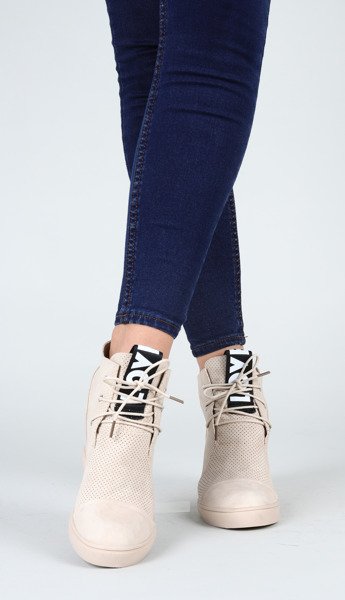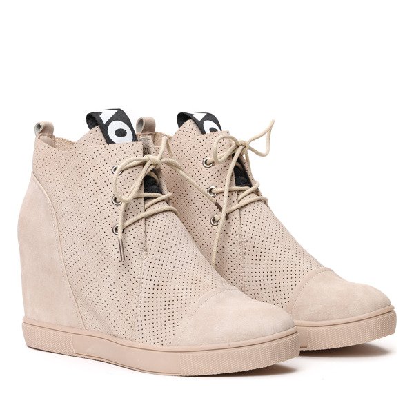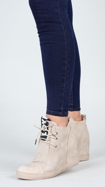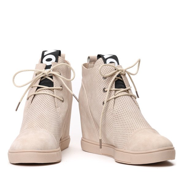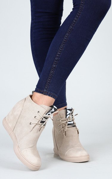 Beżowe sneakersy na krytym koturnie Abella - Obuwie