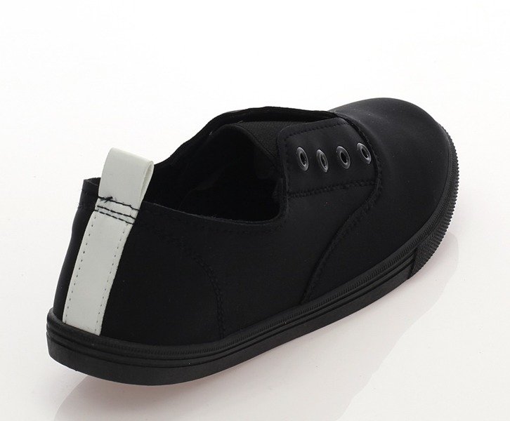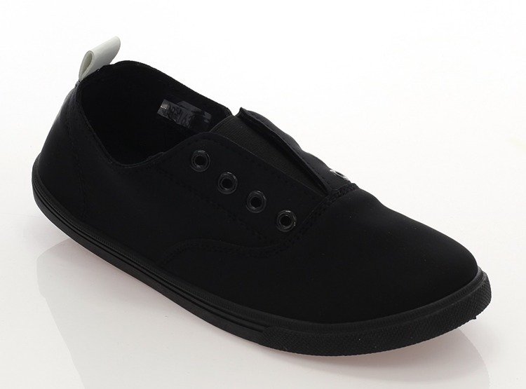 • Klasyczne sportowe tenisówki na płaskiej podeszwie. Materiał wykonania cholewki oraz wkładki to tkanina w czarnym kolorze. Tenisówki są świetnym dodatkiem do sportowej odzieży!