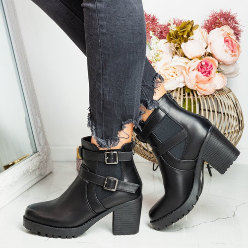 - Dámske topánky na stĺpiku vyrobené z ekologickej kože. Čierny model. Obuv má vzadu zips. Tieto dámske topánky budú dokonalým doplnkom na jeseň.