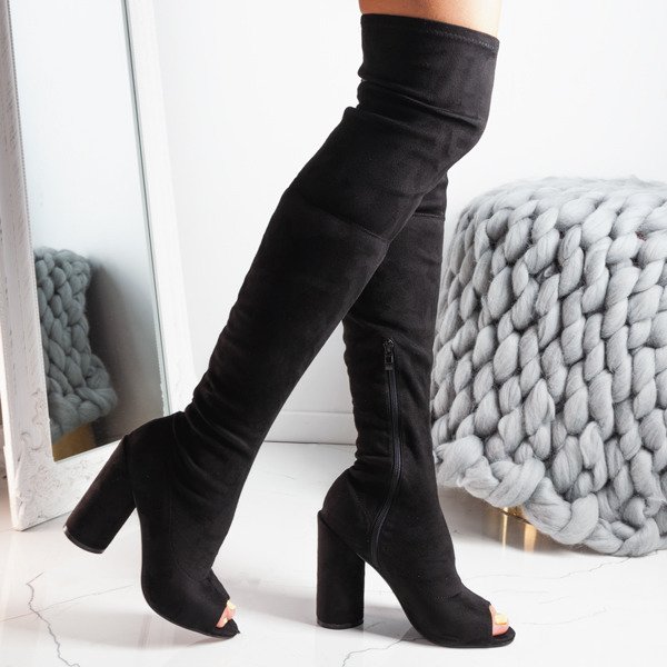- Senzačné dámske topánky s vysokým stĺpikom vyrobené z ekologického semišu v čiernej farbe. Zvršok má na špičke zárez. Model sa zapína na zips na vnútornej strane. Čižmy skvele doplnia vaše jesenné outfity!