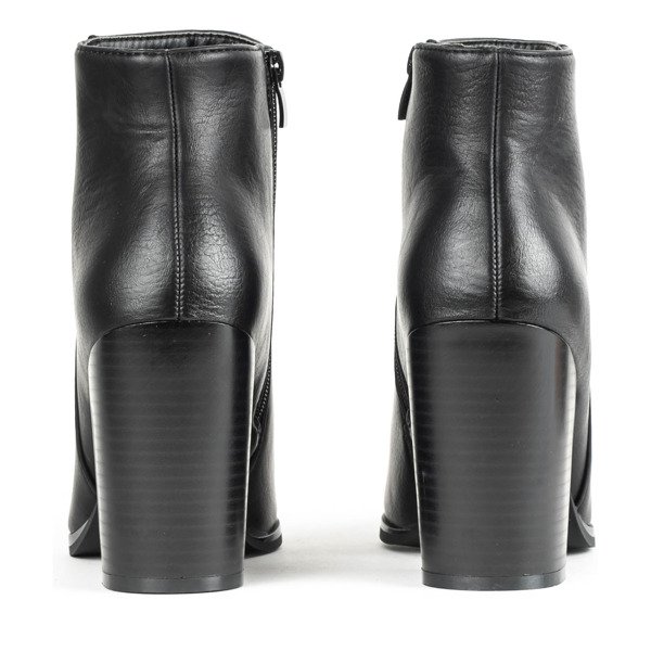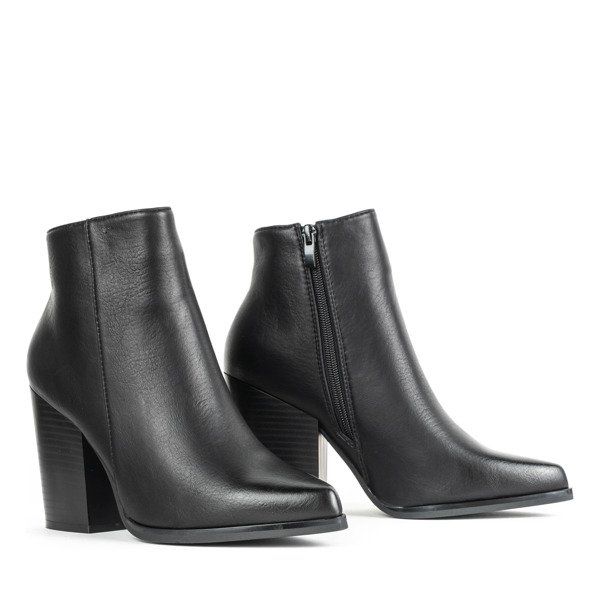 - Elegantné dámske topánky na stĺpiku vyrobené z čiernej ekokože. Vo vnútri jemne zateplené kožušinou. Špicatý nos, ktorý opticky zoštíhľuje nohy. Čižmy budú dokonalým doplnkom a základom každého stylingu.