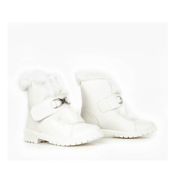 - Okouzlující dívčí boty vyhřívané kožešinou, vyrobené z bílé ekologické kůže. Prezentovaná dětská obuv má pohodlný suchý zip. Další výhodou je podešev s výliskem