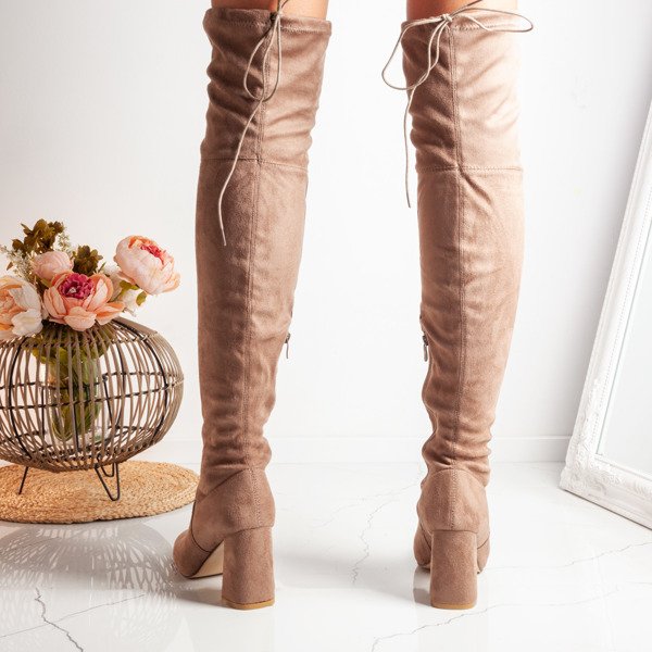 - Klasyczne kozaki na wysokim słupku, wykonane z ekologicznego zamszu w kolorze brązowym. Wkładka pokryta skórą ekologiczną. Z boku posiadają zapięcie w formie suwaka. W środku nie posiadają ocieplenia. Idealnie się sprawdzą do jesienno-zimowych stylizacji!