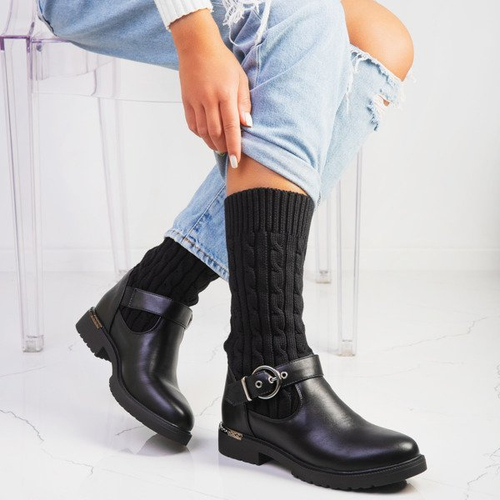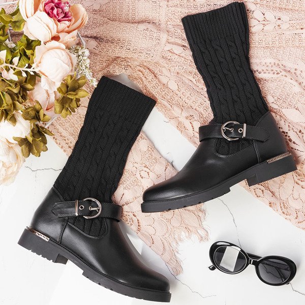 Czarne kozaki z materiałową cholewką Marin - Obuwie