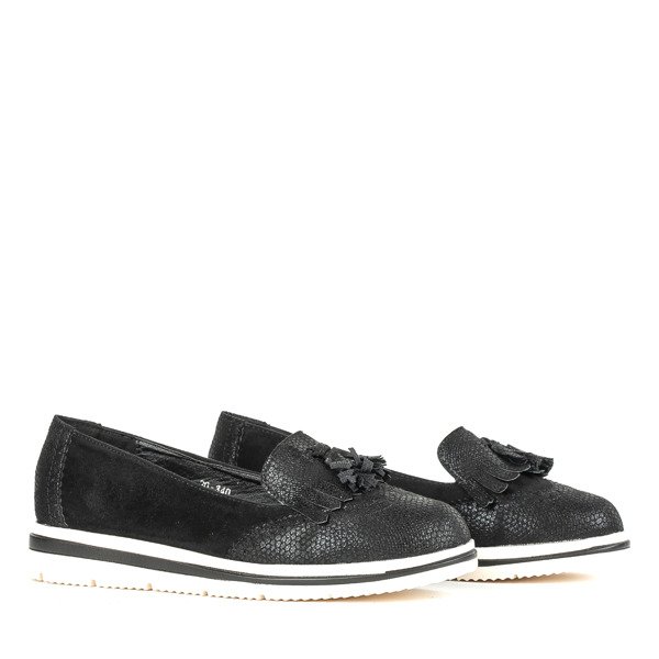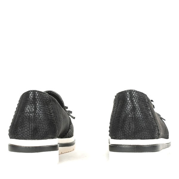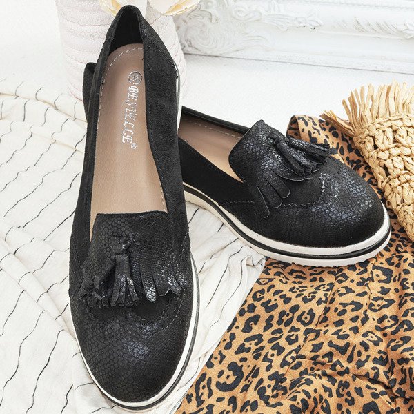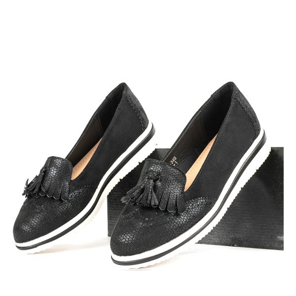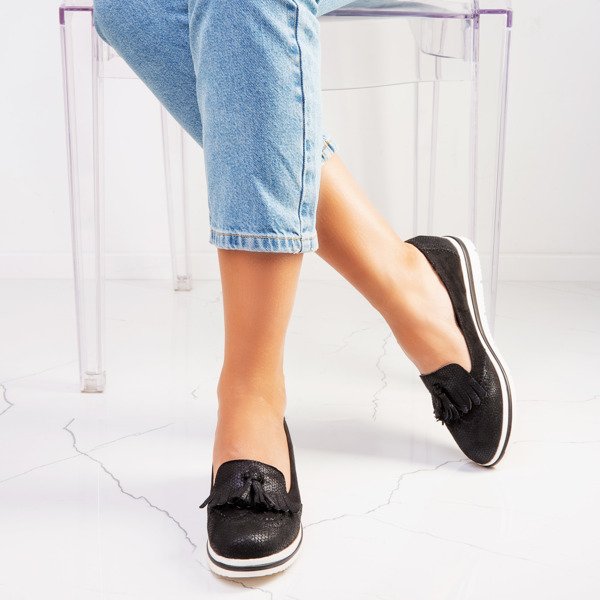 Czarne mokasyny na platformie z frędzelkami Narciso - Obuwie
