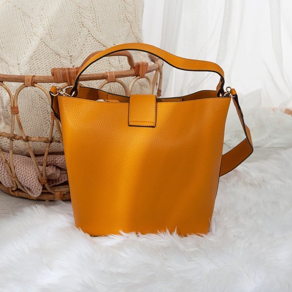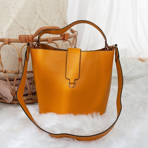 Musztardowa torebka na ramię z eko - skóry - Torebki