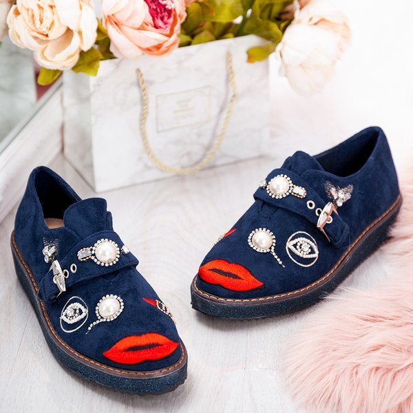 Tmavomodré topánky s dekoráciami Lagerrl - Obuv