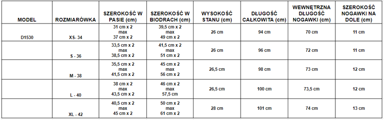 | Veľkosť XS - 34 | |||||||||||||||||||||||||||||