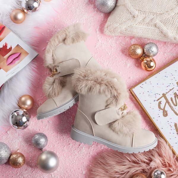 Wiscon béžové čižmy s kožušinou - Obuv