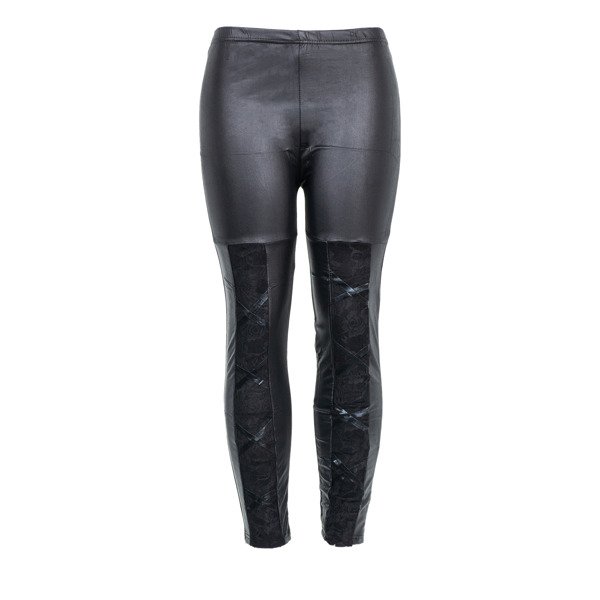 Czarne tregginsy z koronkową wstawką - Spodnie
