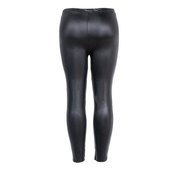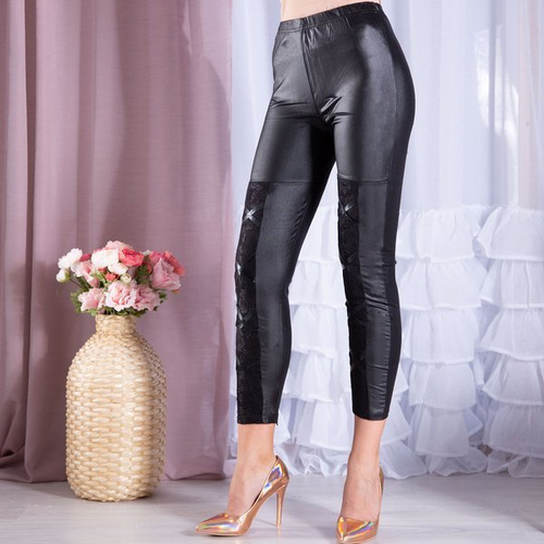 • Czarne klasyczne damskie tregginsy. Materiał wykonania - tkanina z połyskującym wykończeniem. Nogawki posiadają koronkowe wstawki w przedniej części. Krój doskonale wyeksponuje sylwetkę i wydłuży optycznie nogi.