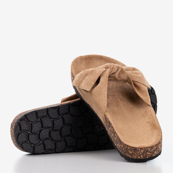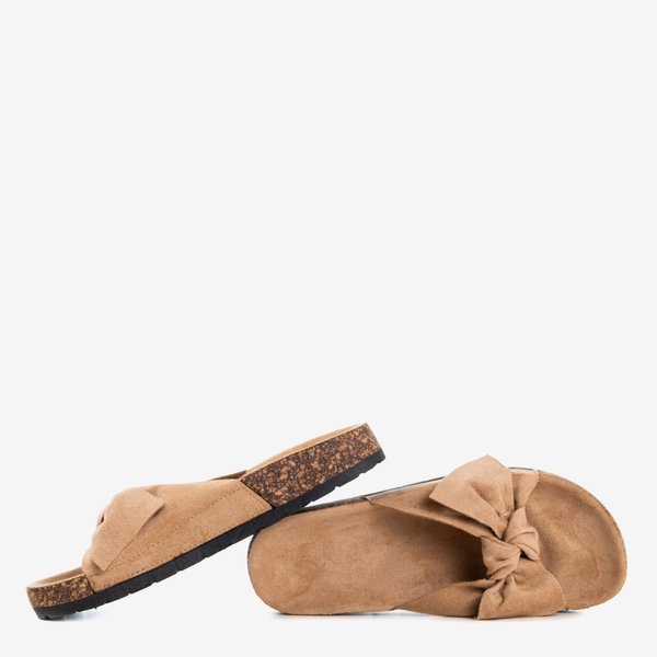 Hnedé papuče z ekologického semišu s mašľou Sun and Fun - Obuv