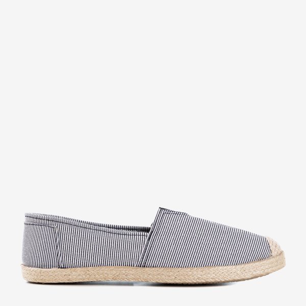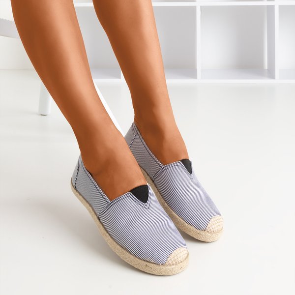 - Dámské espadrily vyrobené z pruhované textilie. Vložka je také látka. Podešev a část špičky jsou zdobeny jutovým provázkem. Jedná se o velmi pohodlné a stylové dámské espadrily, které se dokonale hodí na procházky.