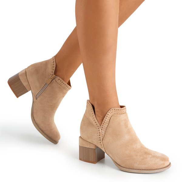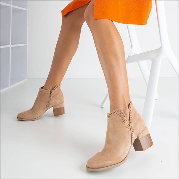 - Senzačné čižmy so štvorcovým podpätkom vyrobené z imitácie dreva. Zvršok je vyrobený z mäkkého eko semišu a stielka je potiahnutá látkou. Model s výrezom, bočný zips. Dámske topánky nie sú zateplené. Ideálne na jeseň!