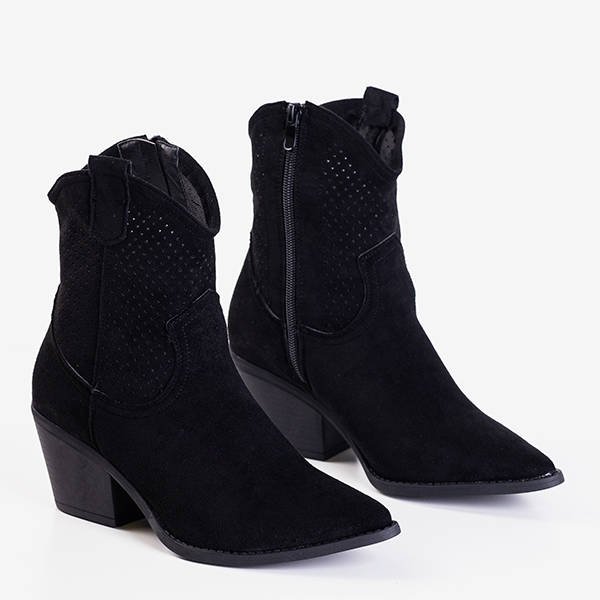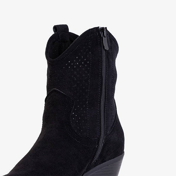 - Dámske prelamované kovbojské čižmy vyrobené z ekologickej semišovej kože. Vnútro topánky je vystlané mäkkou penou a stielka je vyrobená z ekokože. Obuv má špicatú špičku a zapínanie na zips.