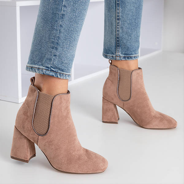 - Štýlové topánky na vysokom podpätku so štvorcovou špičkou. Zvršok je vyrobený z ekologickej semišovej kože, zatiaľ čo stielka z ekologickej kože. Nasúvací model - nemá zapínanie. POZNÁMKA: model môže mať stopy lepidla v blízkosti podrážky a na materiáli.