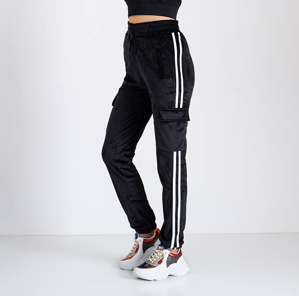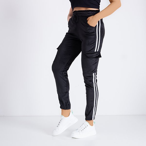 Dámske čierne tepláky s pruhmi - Oblečenie