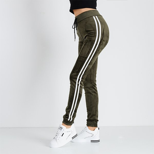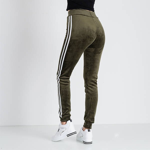 Tmavozelené dámske mikiny so šnúrkami s pruhmi - Oblečenie
