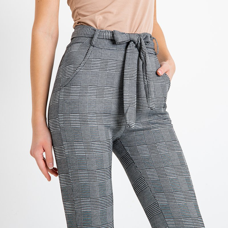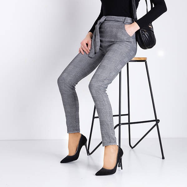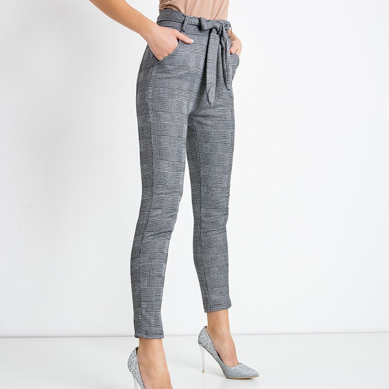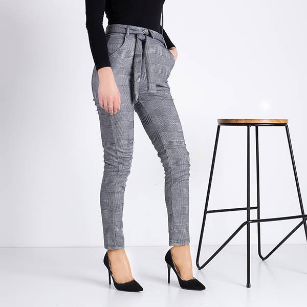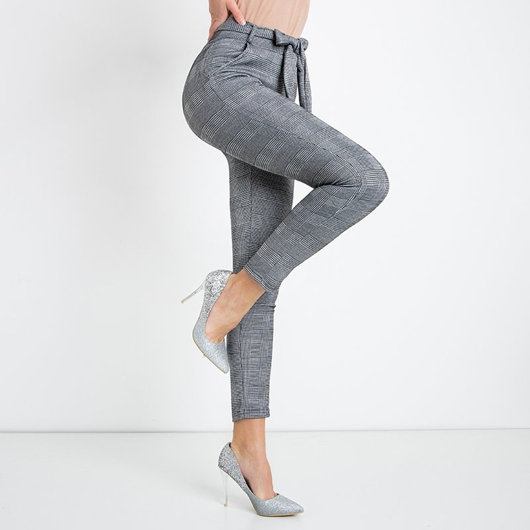 Šedé kárované dámske nohavice - Oblečenie