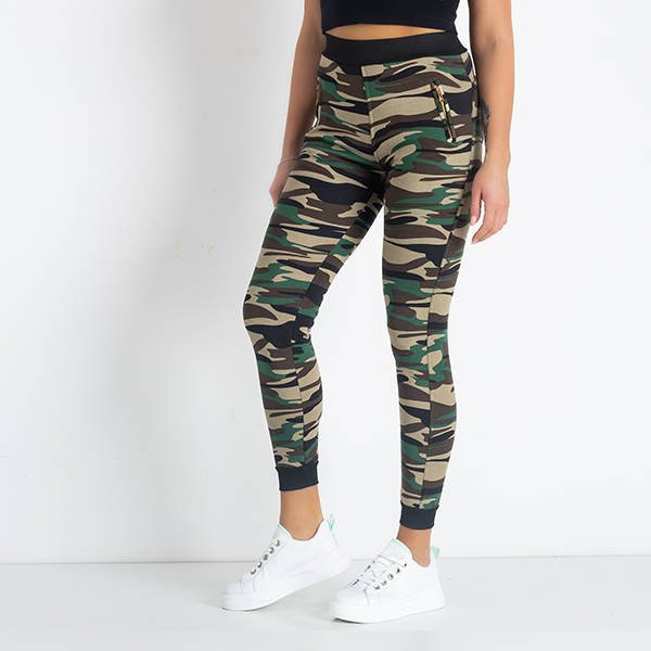 • Dámske tepláky v tvare kamufláže s mäkkou vnútornou podšívkou. Model má 4 vrecká, elastický pás a nohy. POZNÁMKA: Presnosť merania (+/-) 1 cm.