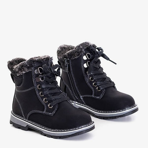 - Módne chlapčenské turistické topánky vyrobené z ekologickej kože v čiernej farbe. Vo vnútri majú kožušinovú izoláciu. Šnurovací model a zips na boku. Perfektné pre chladnejšie dni!