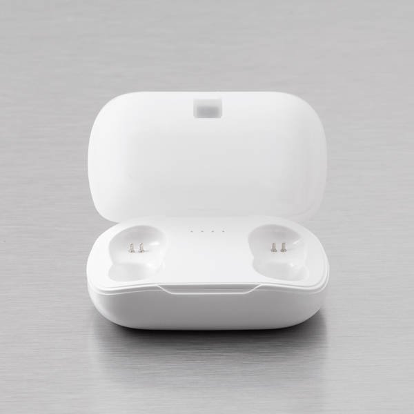 - Biele bezdrôtové slúchadlá: 3 tlačidlá (ovládanie hlasitosti a hovoru), univerzálne (iOS a Android), twist lock, výdrž batérie až 8 hodín. Sada obsahuje: slúchadlá, puzdro s nabíjačkou, kábel USB, silikónové štuple do uší.