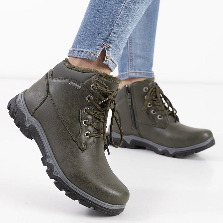 - Pohodlné dámske turistické topánky s rovnou podrážkou, vyrobené z ekologickej kože. Z vnútornej strany majú kožušinovú izoláciu. Šnurovací model a zips na boku. Perfektné pre chladnejšie dni.