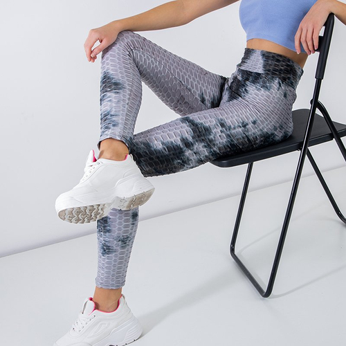 - Dámske športové legíny s vysokým pásom. Model je vyrobený z pružnej látky zdobenej škvrnami. V páse široký elastický pás. Zaisťujú voľnosť pohybu počas tréningu. POZNÁMKA: Presnosť merania (+/-) 1 cm.