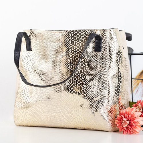 Dámska zlatá nákupná taška a'la hadia koža - Kabelky