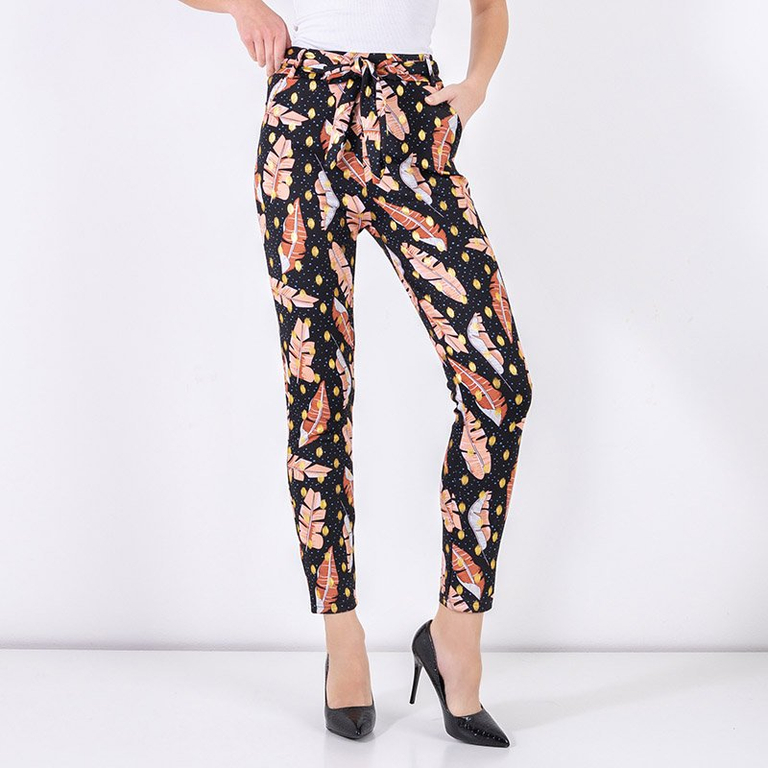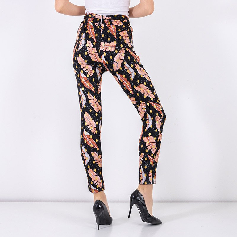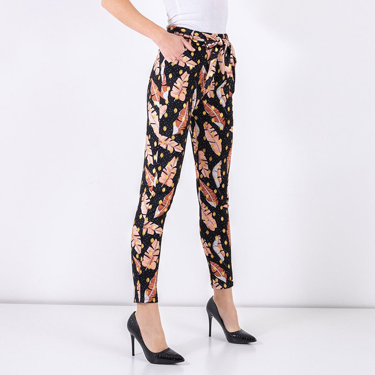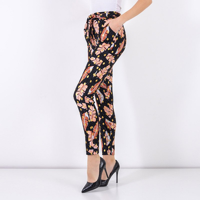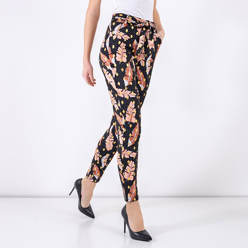 - Elegantné dámske treggy vyrobené z pružnej látky s pierkami. Model má elastický pás, dve sklzové vrecká a zodpovedajúci farebný opasok. Perfektný doplnok k vašej košeli! POZNÁMKA: Presnosť merania (+/-) 1 cm