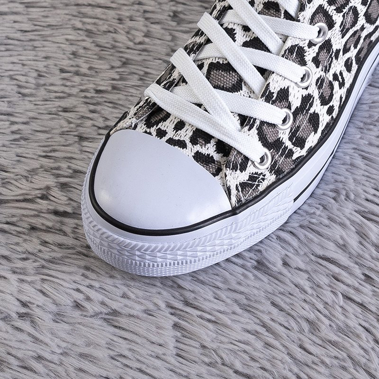 - Klasické tenisky s vysokým zvrškom, na plochej gumenej podrážke. Zvršok a stielka sú vyrobené z látky. Model je navyše zdobený leopardím vzorom. Obuv sa hodí k mnohým každodenným štýlom!