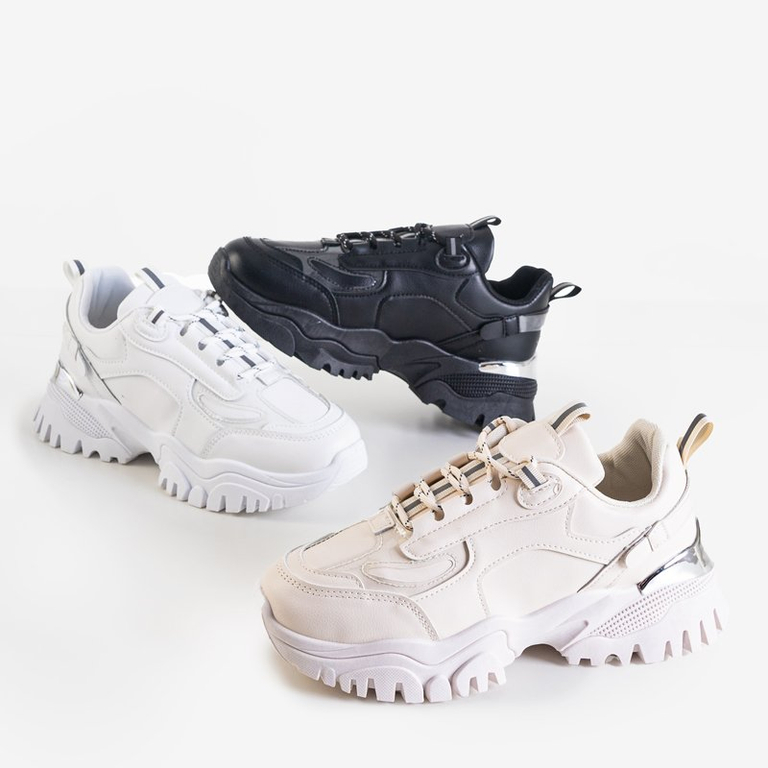 - Daddy topánky pre ženy, vyrobené z ekologickej kože. Model so šnurovacím zvrškom. Zadnú časť podrážky zdobí strieborná vložka. Vnútro je podšité látkou. Ideálne pre aktívny čas!