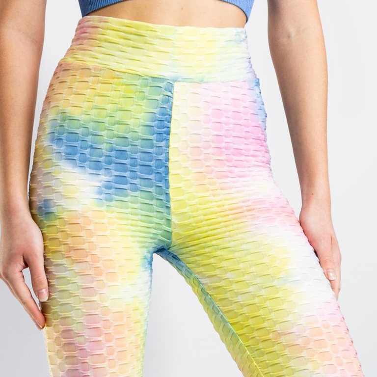 - Dámske športové legíny s vysokým pásom. Model je vyrobený z pružnej látky zdobenej škvrnami. V páse široký elastický pás. Zaisťujú voľnosť pohybu počas tréningu. POZNÁMKA: Presnosť merania (+/-) 1 cm.