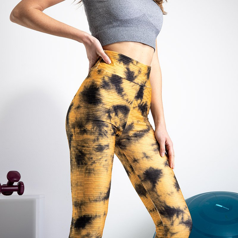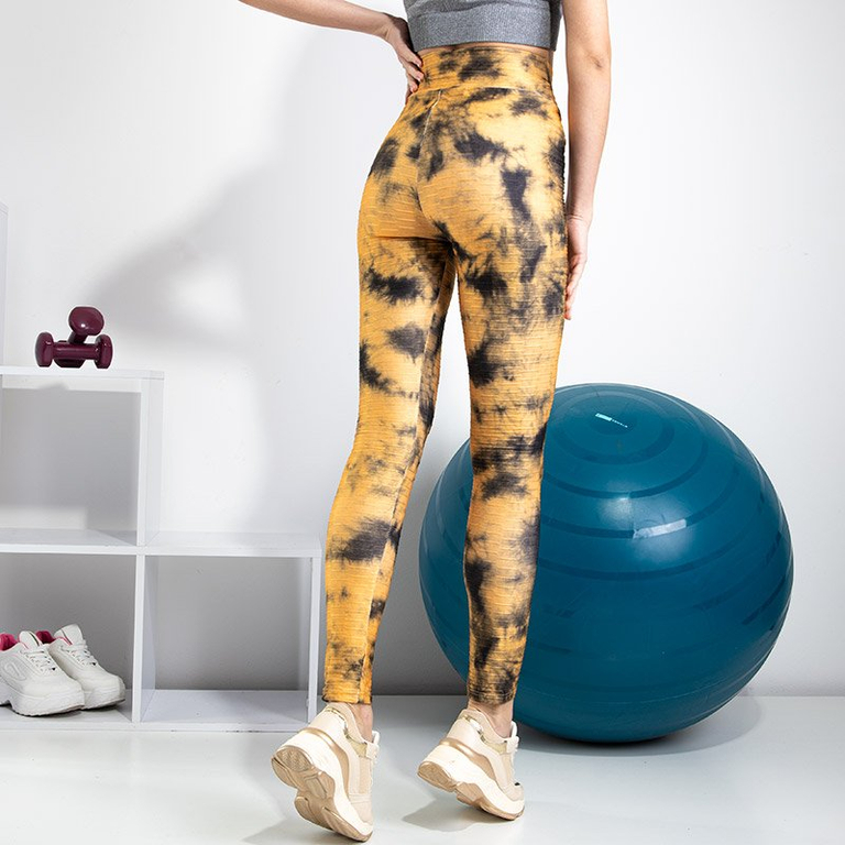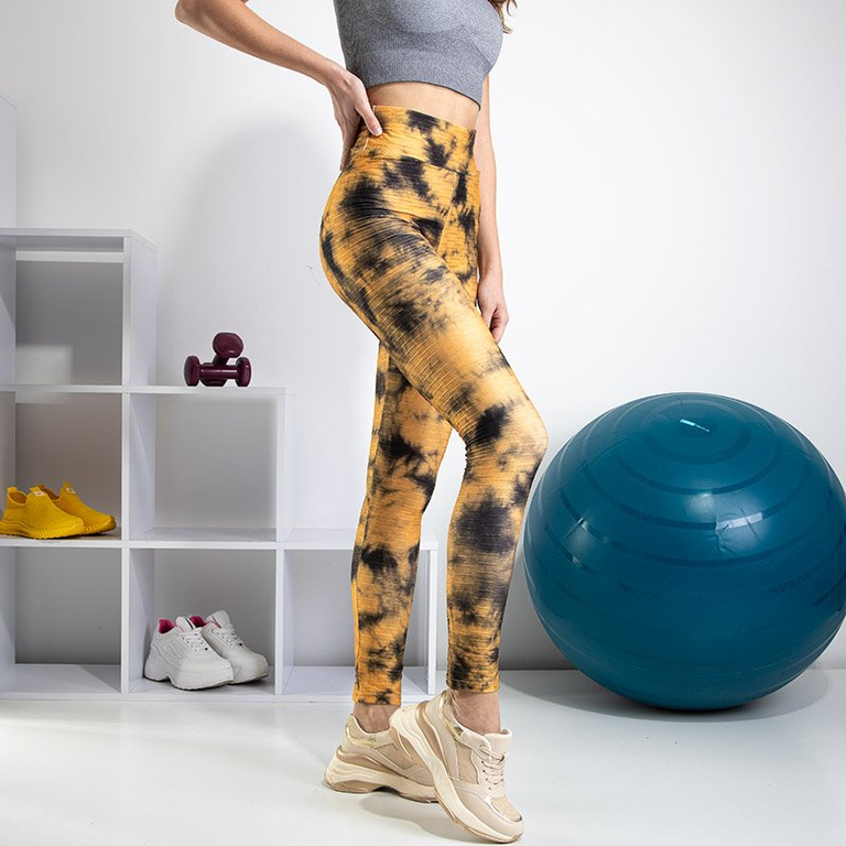 Žlté dámske legíny s ozdobnými škvrnami - Oblečenie