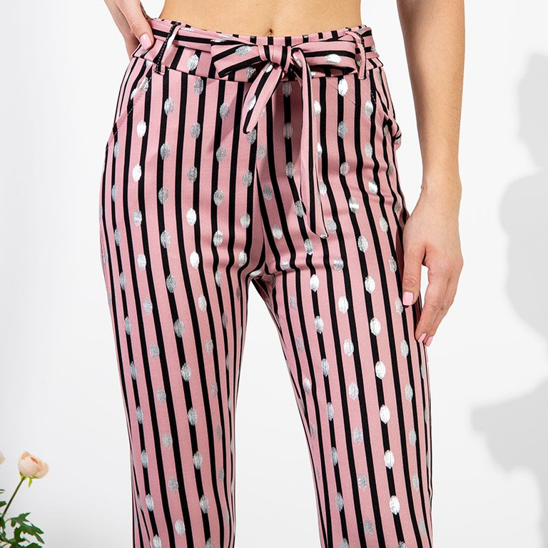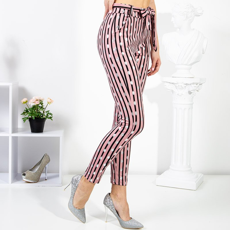 Dámske tmavo ružové pruhované nohavice - Oblečenie
