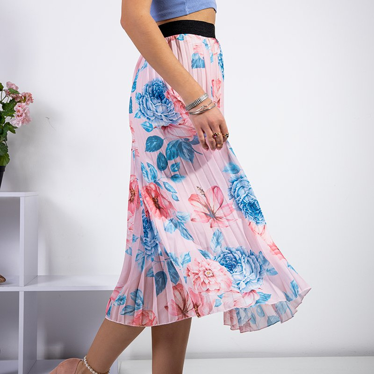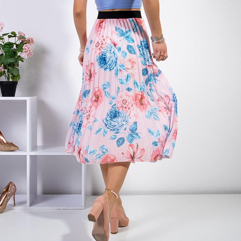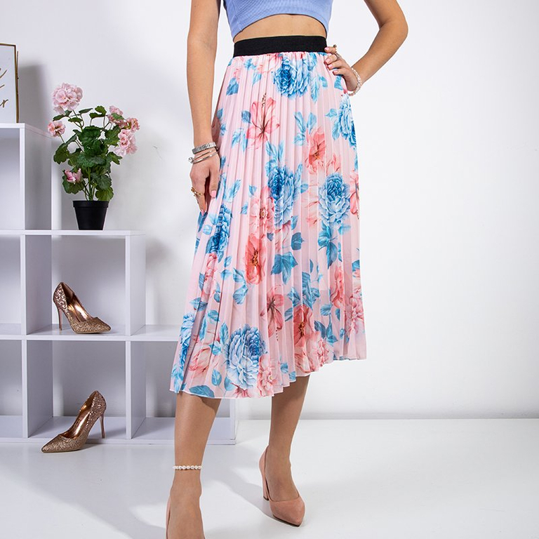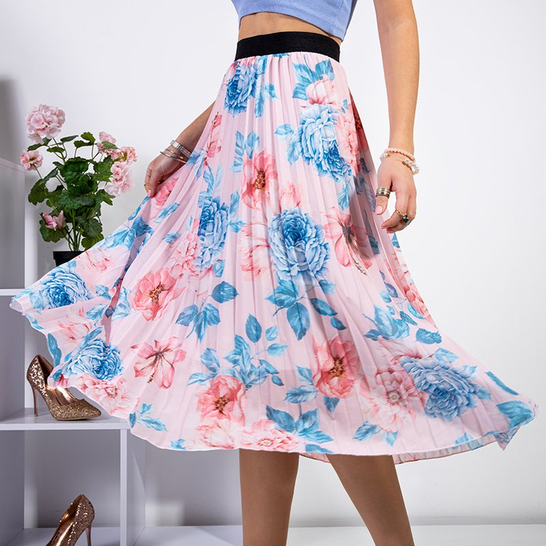 Svetlo ružová dlhá kvetovaná skladaná sukňa - Oblečenie