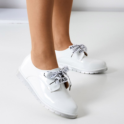 Dámske biele lakované topánky so šnúrkou Ninetti - Topánky