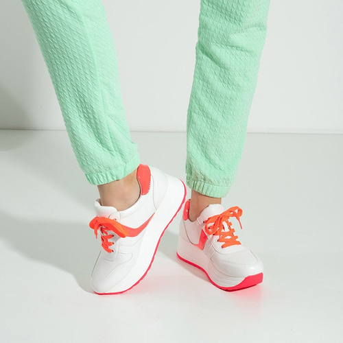 - Dámske športové tenisky na hrubej platforme, vyrobené z ekologickej kože. Šnurovací zvršok, má neónové vložky, stielka je tiež vyrobená z ekokože. Tieto dámske topánky budú ako stvorené pre rifle a bombery!