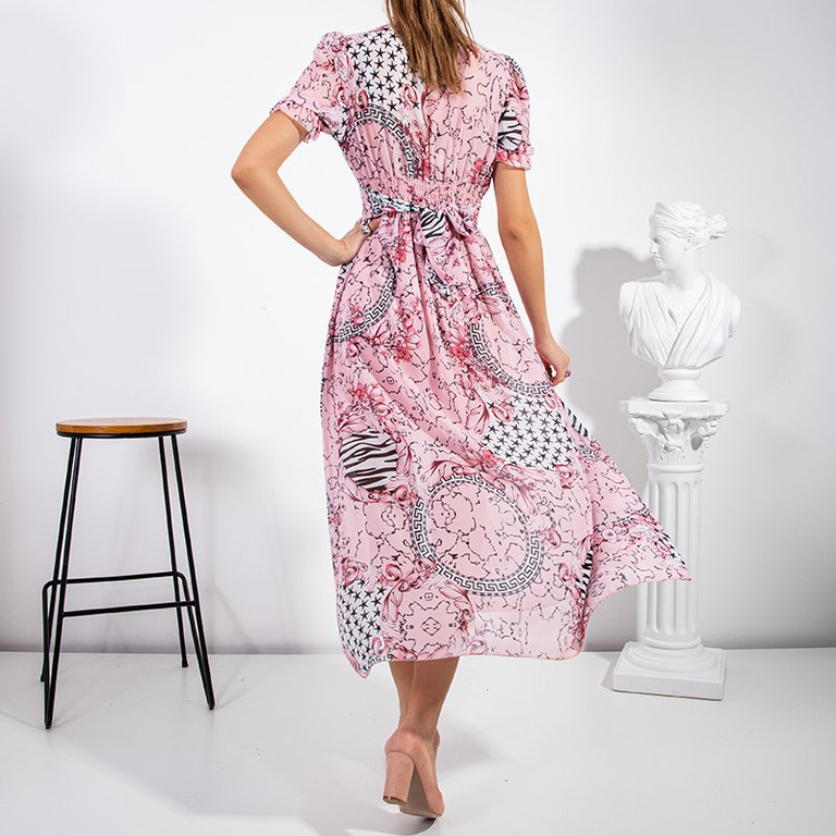 - Štýlové dámske maxi šaty, vyrobené z ľahkej látky - s podšívkou. Model s krátkymi rukávmi, výstrihom do V, vzadu pružnou gumou a vpredu našitým pruhom. POZNÁMKA: Presnosť merania (+/-) 1 cm.