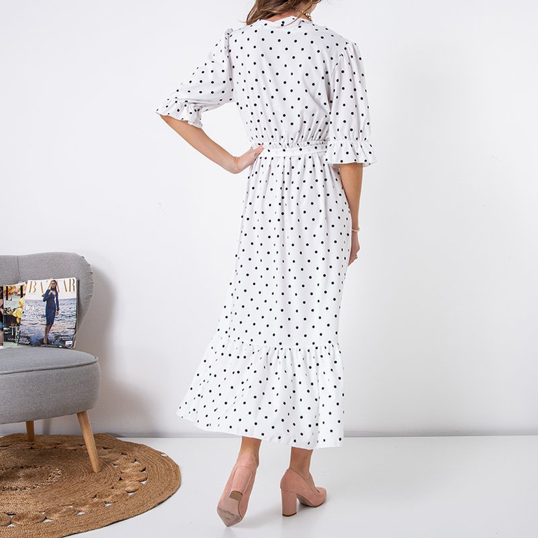 Dámske biele bodkované dlhé šaty - Oblečenie